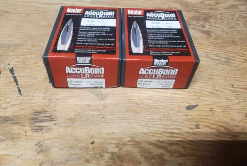 130.00 Nosler Accubond LR 270cal 150gr Aug 19, 2025 - 8:26 PM Darren Neufeld Selling 2 boxes of Nosler Accubond LR 270cal 150gr bullets.