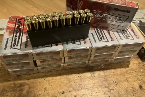 65.00 Hornady LeverRevolution 45-70, 325 Grain FTX (16 Boxes) Nov 19, 2025 - 8:37 PM Marathon Man Here is 16 Boxes of Hornady 45-70 And 1 Box of S&B 405 Grain