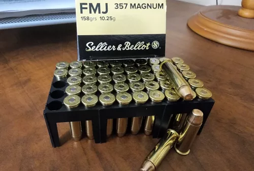 40.00 Sellier & Bellot .357 Mag 158gr. FMJ Sep 23, 2025 - 8:48 PM kristall Full Metal Jacket bullet. Standard lead core with a metallic jacket.