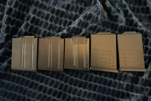250.00 5x MDT 10rd AICS magazines Dec 7, 2025 - 6:42 PM Sameagol26 5X 10rd AICS magazines made by MDT. 3x metal, 2x polymer. 1 polymer is a 12rd magazine.