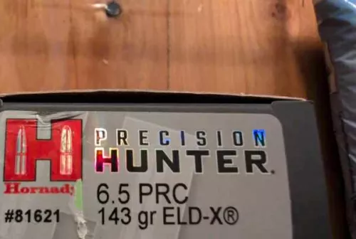 80.00 Hornady 6.5 PRC 143 gr ELD‑X Precision Hunter Oct 25, 2025 - 5:56 PM nicoyeg I have 4 full boxes of the 6.5 PRC 143 gr ELD‑X Precision Hunter.