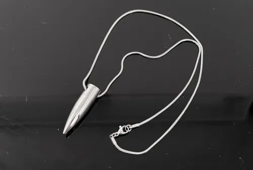 30.00 Bullet Capsule Necklace Mar 8, 2026 - 12:03 PM Mrd74 Stainless steel bullet pendant unscrews to reveal a hidden compartment, a perfect way to carry pr