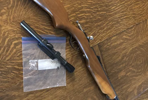 200.00 Cooey Model 75 Oct 16, 2025 - 8:40 AM The Joyful Outdoorsman Cooey model 75 with fibre optic open sights and scope (4x Weaver Marksmen) one