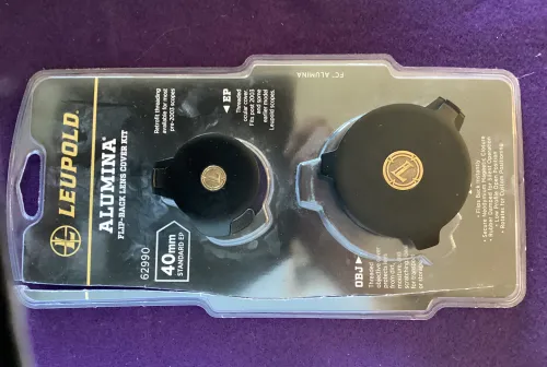 175.00 ALUMINA flip-back lens cover kit Apr 11, 2026 - 8:50 AM The Joyful Outdoorsman 40 mm standard eye piece and 50 mm objective covers for Leupold scopes