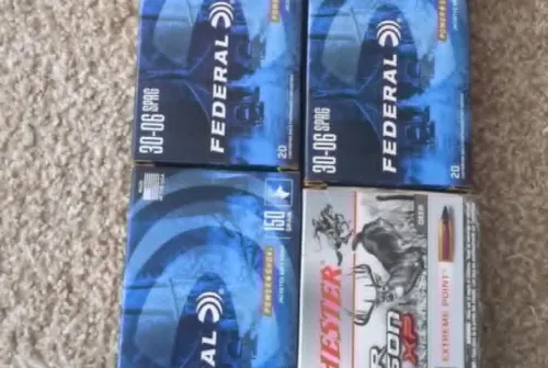 180.00 30-06 ammunition Mar 14, 2026 - 6:00 AM gordo 1 box winchester deer season xp 150 grain 3 boxes of federal power shok 150 grain