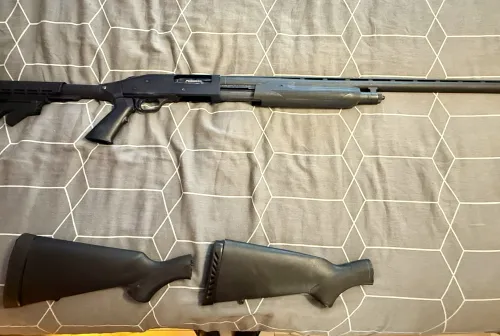 500.00 Mossberg 12 Gauge 2 3/4”, 3” and 3.5” Jan 7, 2026 - 1:16 PM Mantis Comes with ATI adjustable stock and 2 polymer stocks. Fibre optic sights.