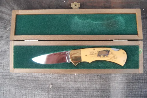 1000.00 Puma limited edition 4 star knife Jan 19, 2026 - 10:13 AM darth_vader Puma limited edition 4 star folding knife with gold inlays, scrimshaw and original box.