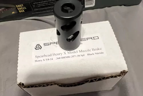 100.00 Spear head muzzle brake model x .357Mag/.360BH Sep 28, 2025 - 7:50 AM kwskeeter Nice condition muzzle brake for Henry model x, .357/.360 Will ship at your expense