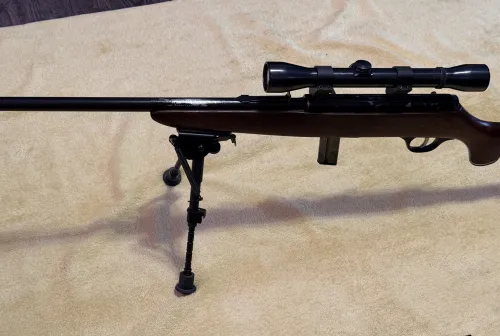 350.00 Marlin 89c 22lr Feb 27, 2026 - 9:28 AM bkova7 Nice old school marlin 89c with 4x scope and bipod attached. Fairly accurate semi auto gun.