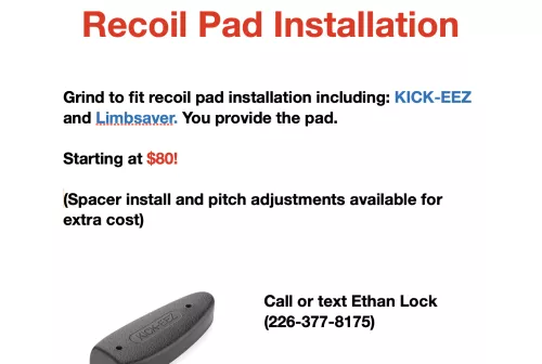 80.00 Recoil Pad Installation Sep 10, 2025 - 5:58 PM ethanlock Information in picture call or text 226-377-8175 Located Ilderton Ontario