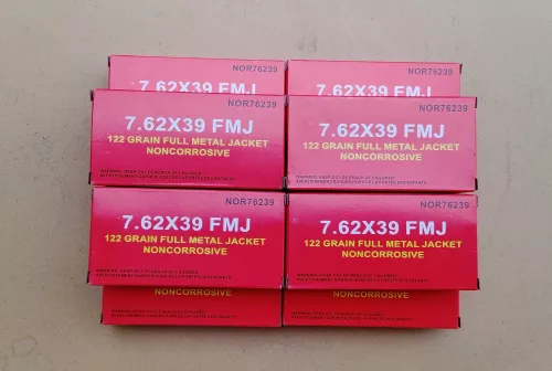 150.00 7.62x39 Non-Corrosive Aug 25, 2025 - 6:23 PM houseguy 10 boxes of Norinco 7.62x39, FMJ, non- corrosive ammunition. 20 rounds per box.