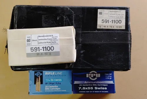 35.00 7.5x55 Swiss GP11 and PPU Feb 2, 2026 - 10:06 AM houseguy GP11, FMJ, non-corrosive. Pack of 60 rounds (6 boxes, 10 rounds each), $85 ($1.42 per round).
