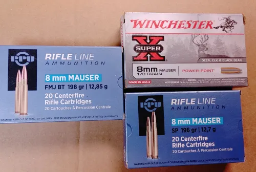 35.00 8mm Mauser (8x57) FMJ and SP Mar 16, 2026 - 11:46 AM houseguy Minimum 4 boxes, mix or match. PPU 198 gr, FMJ. $35 per box.