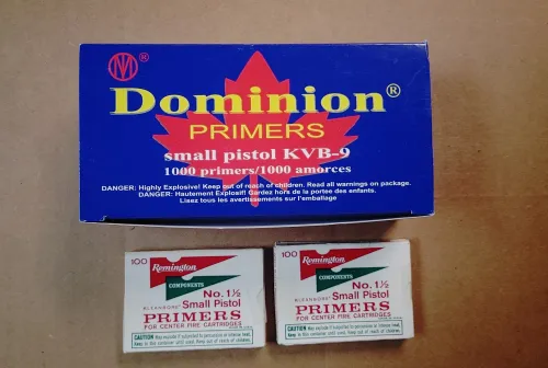 100.00 Pistol Primers and Small Rifle Primers Mar 16, 2026 - 11:19 AM houseguy Small pistol, Dominion and Remington, $100 per brick.