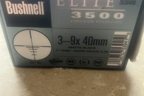 SOLD 200.00 Bushnell elite 3500 3-9x40 DOA600. $200+ship. Mar 11, 2026 - 9:52 AM jimbobob08 PENDING PAYMENT. Mounted on a 243win for sighting in/one hunt.