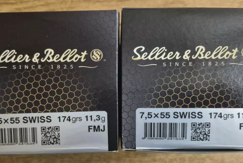 260.00 S&B 7.5x55 Swiss 174gr 100rd Oct 2, 2025 - 8:41 AM Emily73 S&B 7.5X55 Swiss 174gr FMJ ammo 2 box, 100rd