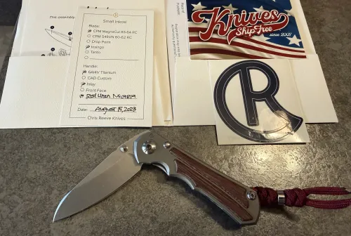 600.00 Chris Reeve Knives Small Inkosi Feb 28, 2026 - 12:59 AM ScottNahirniak Red linen micarta inserts, Insignio blade. CRK bead and lanyard.