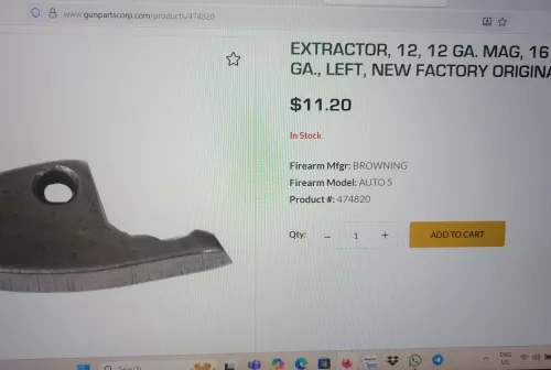 Wanted Browning Auto 5 Left Extractor Oct 16, 2025 - 12:43 AM Irangun Looking for Left Extractor . Auto 5 .