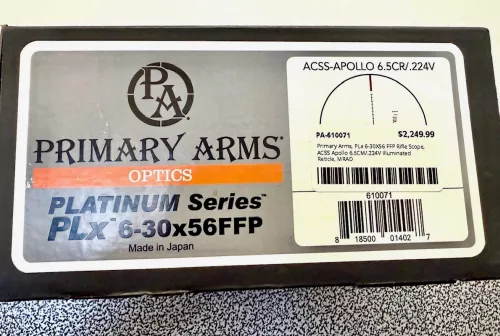 1950.00 Primary Arms, PLx 6-30X56 FFP Rifle Scope, ACSS Apollo 6.5CM/.224V Illuminated Reticle, MRAD With MPA low mount Oct 4, 2025 - 10:38 AM DesmoJames916 ***Please Note: This will be available when I return October 9th*** However, Contact