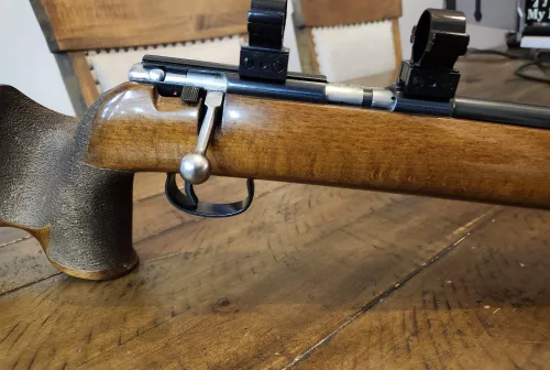 1000.00 Anschutz .22 Match 64 Sep 11, 2025 - 5:54 PM Dutchie Bolt action, single shot match grade .22 LR Anschutz target rifle.