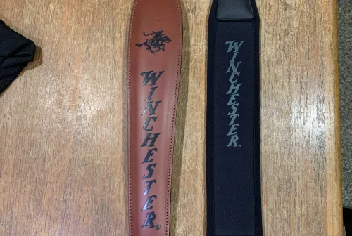 50.00 New Winchester slings Sep 14, 2025 - 8:26 PM Espingarda Leather Winchester padded cobra style rifle sling. New without tags.