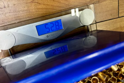 89.00 53 Pounds of 9mm (About 5989 pieces) Sep 15, 2025 - 6:48 PM Glock User 53 pounds of 9mm brass. About 113 pieces per pound gives 5989 pieces.