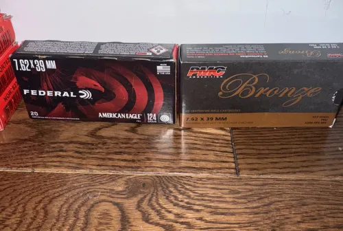SOLD 240.00 7.62x39 Ammo 16 boxes (320 cartridges) Apr 7, 2026 - 8:54 AM matt2423 1 box Federal American Eagle 124 gr Fmj - non-magnetic, non corrosive