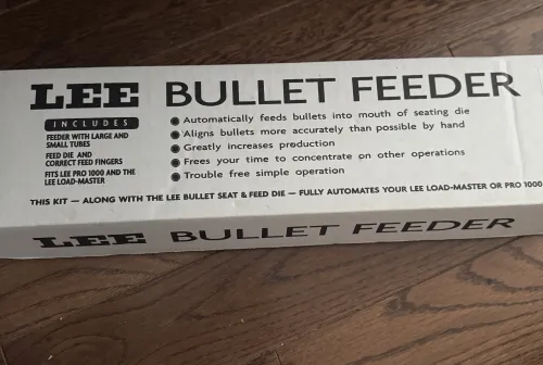 55.00 Lee bullet feeder. Like new condition Apr 8, 2026 - 2:36 PM matt2423 Works great to help speed up production on the Pro 1000 press.