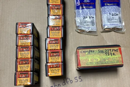 745.00 .224 Bullets (.22cal) Dec 21, 2025 - 11:56 AM johndfb55 .224 (22cal) 5 boxes of Barnes TSX 55gr FB $SOLD