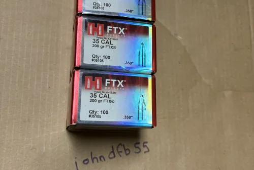 300.00 .35cal Hornady 200gr FTX Dec 21, 2025 - 12:02 PM johndfb55 .358'' (.35cal)360 Hornady 200gr FTX $300