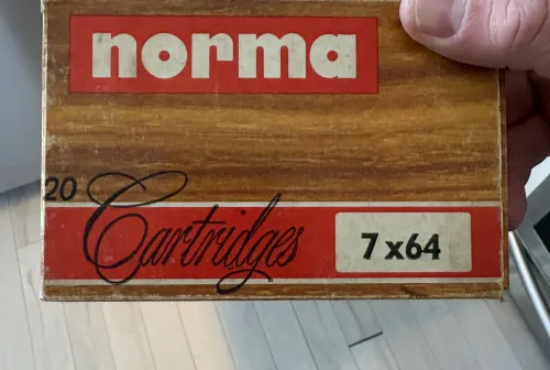 100.00 Norma 7x64 Jan 25, 2026 - 7:00 AM johndfb55 Full box of 20 cartridges, Norma 7x64 150gr Soft Points $100