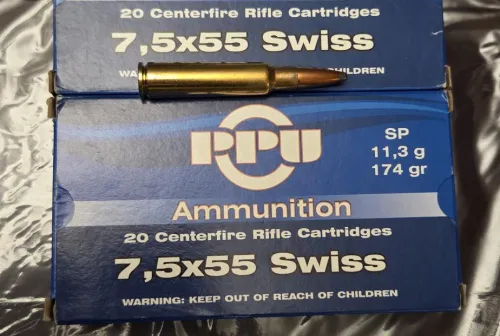 65.00 Privi Ammo 7.5x55mm Swiss 174 Gr Jan 7, 2026 - 10:22 AM G221133 Prvi Ammo 7.5mm Schmidt-Rubin (7.5x55mm Swiss) 174gr FMJBT 20/Box 2 Boxes