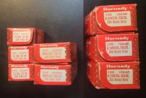 123456.00 Hornady projectiles (224. 243 (6mm) and 264 (6.5 mm)) Mar 5, 2026 - 11:40 AM RCEME411 #2267 .224 55 GR FMJ BT x 300 ($60) #2460 .243 (6mm) 100 GR Spire point x 200 ($100)