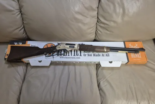 1999.99 Henry Golden Boy side gate 4570 with original box Jan 24, 2026 - 7:49 PM Dakotahunter Henry Golden boy lever action side gate 45-70 cal brass color.