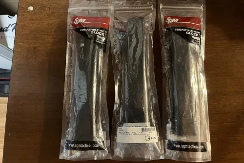 50.00 SGM 10/33 9mm Glock compatible Magazine’s Feb 19, 2026 - 9:09 PM Robmcgavin14 Selling 3 brand new SGM 9MM 10/33 glock compatible stick magazine’s.