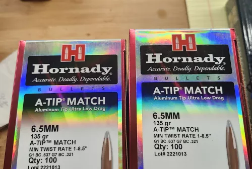 100.00 Hornady a-tip 6.5 Oct 6, 2025 - 5:27 PM kmp1981 I have 6 boxes of hornady a-tip 6.5mm 135g looking for $100 per box would prefer local sale