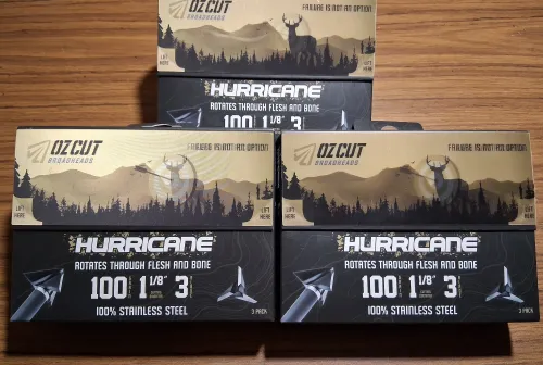 100.00 Ozcut Hurricane Broadheads Jan 5, 2026 - 1:41 PM Jeffy Exotic I have 8 broadheads for sale, Ozcut Hurricane 100 grain 3 blade.