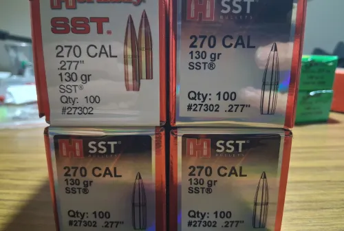 60.00 130 grain Hornady SST Feb 15, 2026 - 12:37 AM Jeffy Exotic 4 unopened boxes of 130 grain SST bullets in 277 caliber. Don't have a 270 anymore.