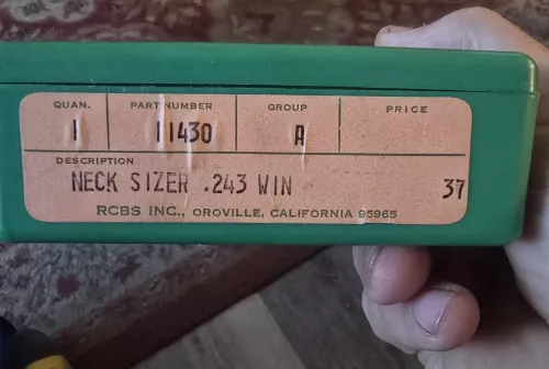 50.00 243 neck sizing die Aug 29, 2025 - 8:28 PM cbedford Excellent shape neck sizing die. Shipping on buyer. Open to trades.