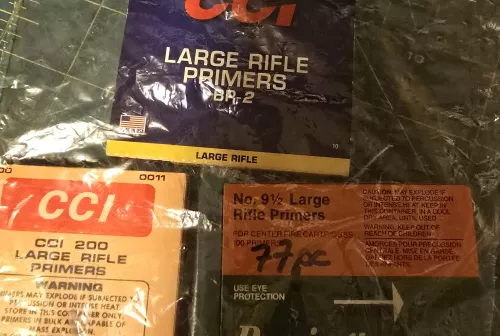 45.00 Large rifle primers Sep 9, 2025 - 11:15 PM cbedford 2 full sleeves and on with 77 pcs (see pic) all for 45. Large rifle primers