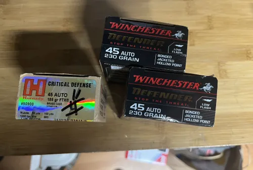 90.00 45 ACP Defensive ammunition Feb 28, 2026 - 1:03 PM hicap2054 Two full boxed (40 rounds) of Winchester PDX defender 230gr bonded and half box (11 rounds) of Ho