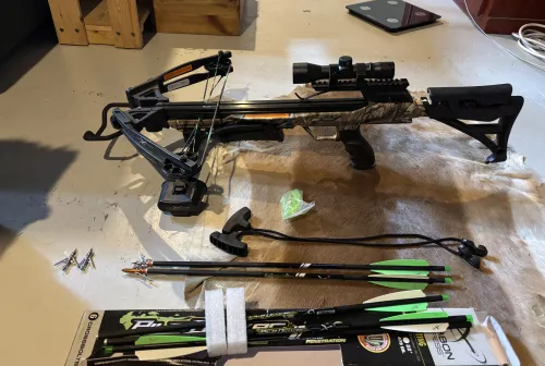 300.00 Carbon Express X Force Blade Sep 21, 2025 - 5:32 PM connor645 Carbon Express X Force Blade crossbow with 4 bolts, 3 Rage Hypodermic broad heads, 1 Rage X NC br