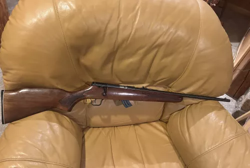 375.00 Lakefield mark II 22. LR Sep 2, 2025 - 5:44 PM jesseells Nice shape 22. LR wood stock. Comes with clip