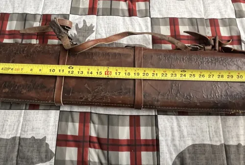 85.00 Leather Leg of Mutton Case Mar 13, 2026 - 4:25 PM The Spank Vintage leather leg of mutton case for sub-gauge guns(narrower width and not as deep of body) wit