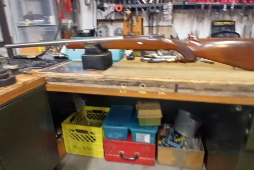 750.00 RUGER M77 MARK1, 6MM REM, 25 1/2'' REBARRELLED TO A HVY BBL Feb 21, 2026 - 2:11 PM McJimmy RUGER M77 MK 1, 6MM REM, 25 1/2'' REBARRELLED TO A SS HVY BBL, 1-10 TWIST, UNKOWN BRAND OF