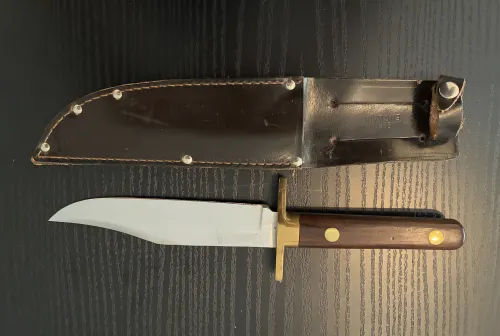 135.00 Sheffield Bowie Dec 6, 2025 - 12:35 PM Glatkunis Sheffield Bowie: "Cuts my way" logo on the blade. Appears unused but some minor handling marks.