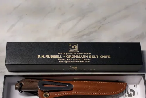 185.00 Grohman Coast Guard Knife Dec 7, 2025 - 12:23 PM Glatkunis Grohman Coast Guard Knife. New in Box. Sheath has Canadian Coast Guard Logo.