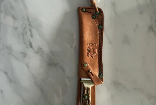 475.00 Puma Hunters Friend Dec 6, 2025 - 2:07 PM Glatkunis Puma Hunters Friend: Manufactured 1976, as new, leather very supple , knife no marks.