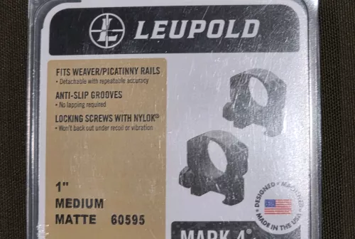 175.00 Leupold Mark 4 Steel 1-inch Scope Rings Leupold part no. 60595 Leupold part no. 60019 and Volquartsen Aluminum 1-inch Scope Rings ****Price Drop**** Sep 14, 2025 - 8:46 PM Keyser Soze Leupold Mark 4 steel 1-inch scope rings medium height 60595 new in package $175 each.