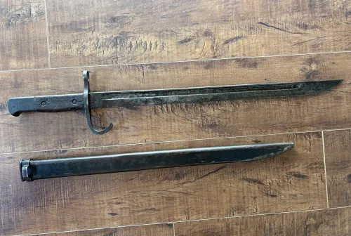 500.00 Early Japanese Type 30 bayonet Apr 29, 2026 - 5:32 PM Polar56 Early first model Type 30 series bayonet with rounded bird’s head pommel, hooked quillon, grip fa